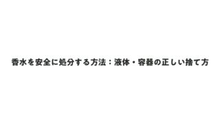 香水を安全に処分する方法:液体・容器の正しい捨て方 香水は日常生活で多くの人が使用する製品ですが、使い終わった後の処分方法について悩む人は少なくありません。香水には可燃性のアルコール成分が含まれており、適切な処分方法を知らないと環境汚染や火災のリスクが生じる可能性があります。本記事では、香水... 2026.01.29
